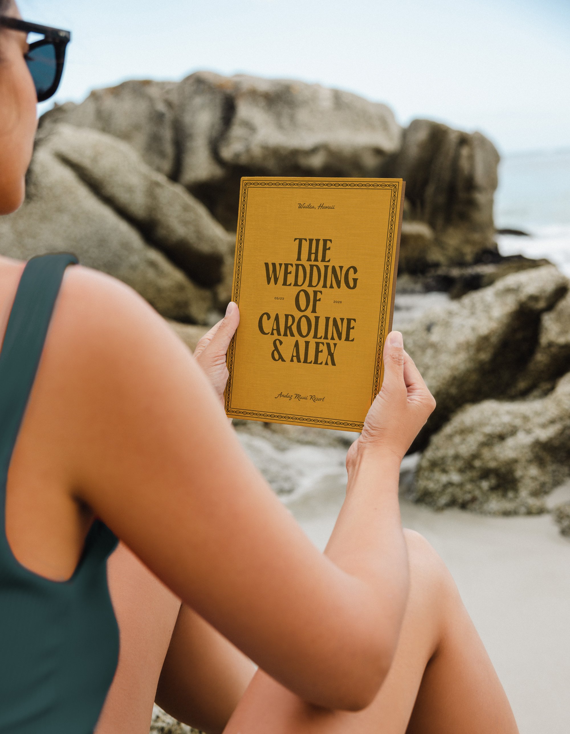 Get swept up in breezy, playful design. Inspired by tropical prints, vintage Hawaiian airline tickets, and postcards, Maui is familiar and fun — the perfect way to get guests excited about your tropical destination wedding. Hand-drawn typography and illustrations are elevated by refined, minimalist layouts, creating an effortlessly elegant impression.
